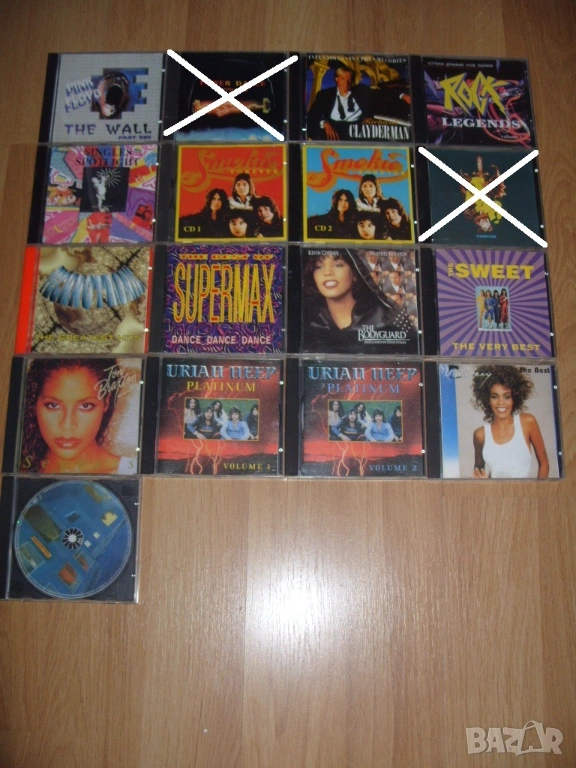 Всички дискове които са продадени са задраскани на снимките и не са изписани в списъка.