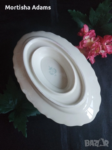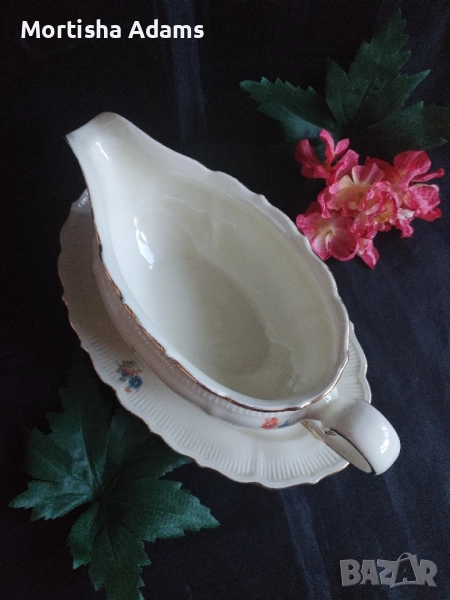⚜️ Прелестна столетница с вградена подложна чиния и вместимост 0,5л. Произведена е около 1918г. и е в чудесно състояние предвид възрастта ѝ. Единствено златният кант е леко износен.