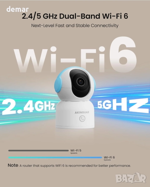 AKINGUAR 4K 8MP Безжична вътрешна камера, 2.4G/5GHz WiFi, 64GB карта