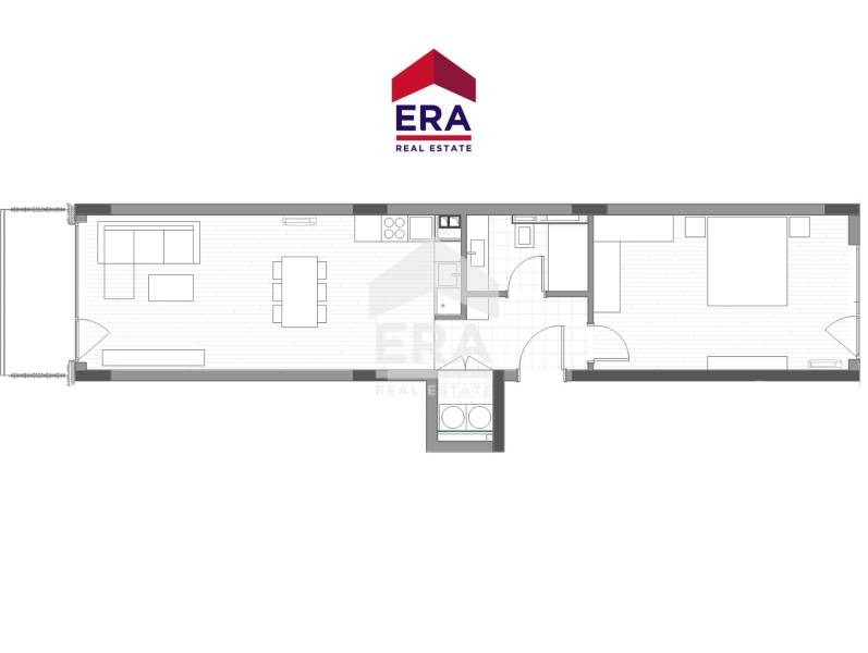 Апартамент В43 75,63 кв. м. се състои от просторна южна дневна, голяма спалня, антре, баня, склад и лоджия.