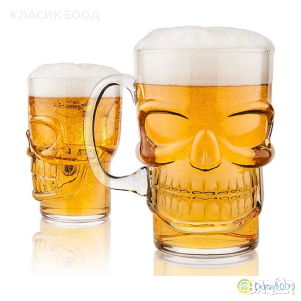 Халба, чаша за бира череп. Стъклена халба, чаша череп с вместимост 500 мл.