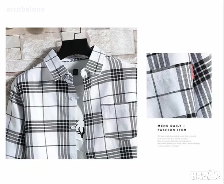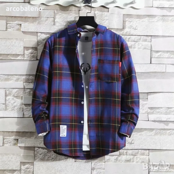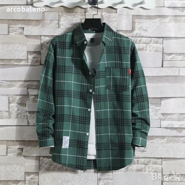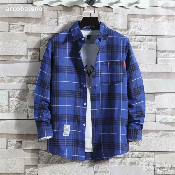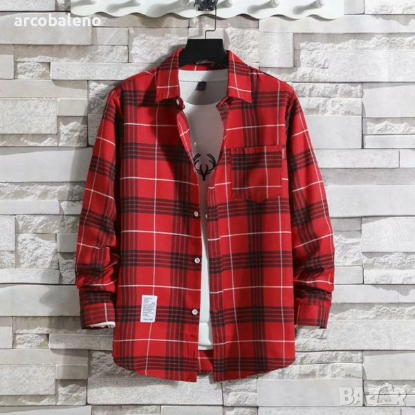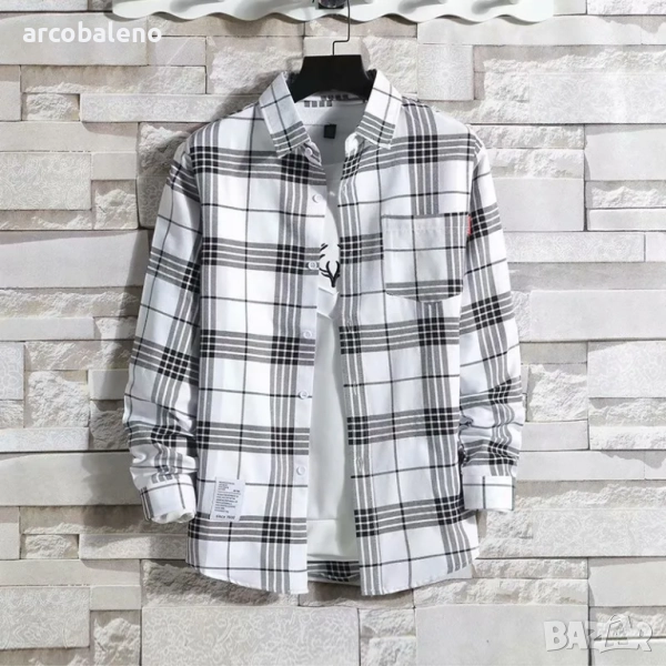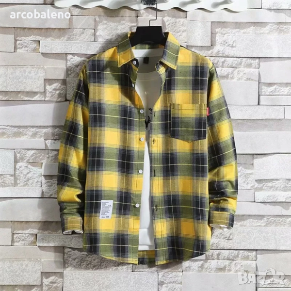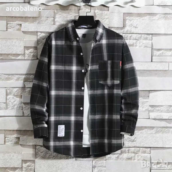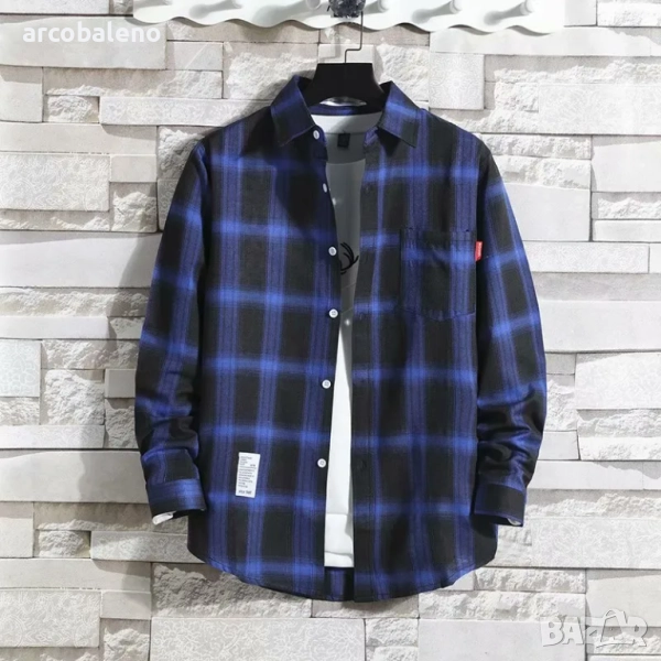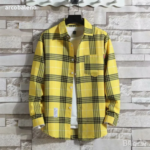 Тънка мъжка карирана риза с дълъг ръкав, 14цвята