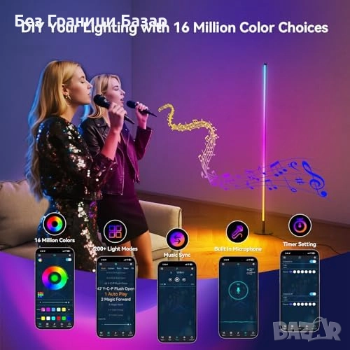 Настройка на цветове, яркост, ефекти и таймер по желание