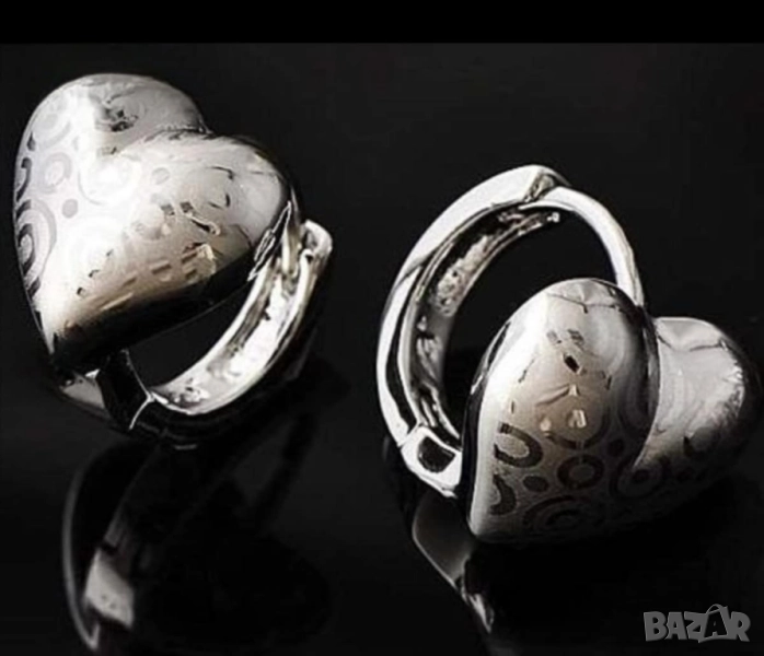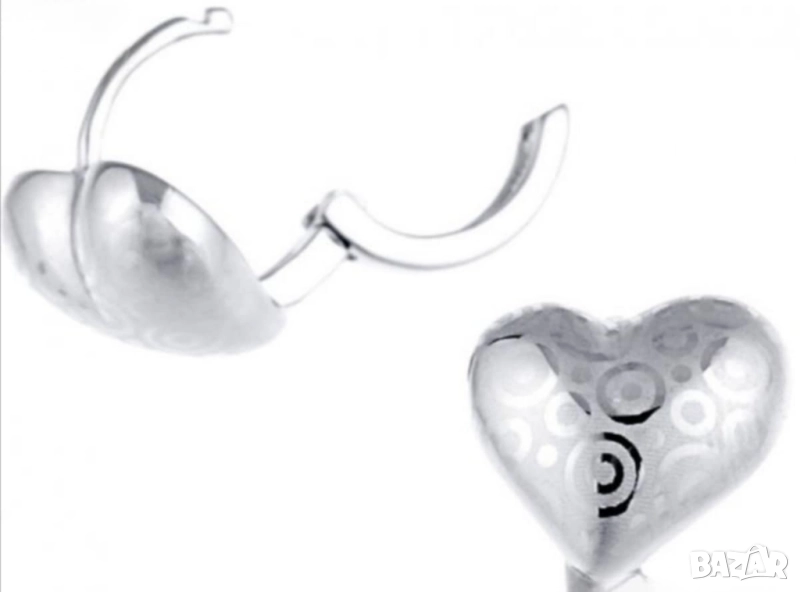 Фини обеци сърца от 14к бяло попълнено злато 15 лв. → Обява 51767946