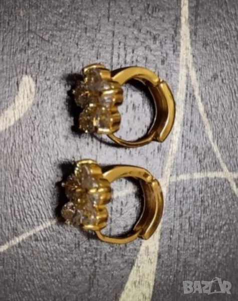 Прекрасни обеци цвете от 14к попълнено злато с цирконии 20 лв. → Обява 51768124