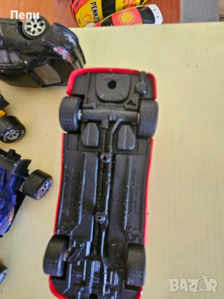 Предлагам 2 бр метални колички от колекцията SHELL MOTOSPORT, 1 бр метална, червена MITSUBISHI с отварящи врати, 1бр метална, черна MASERATI. Още две спортни, пластмасови коли.