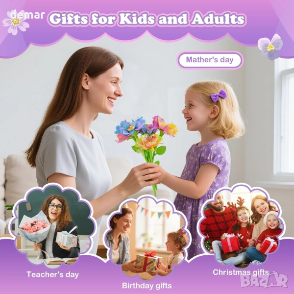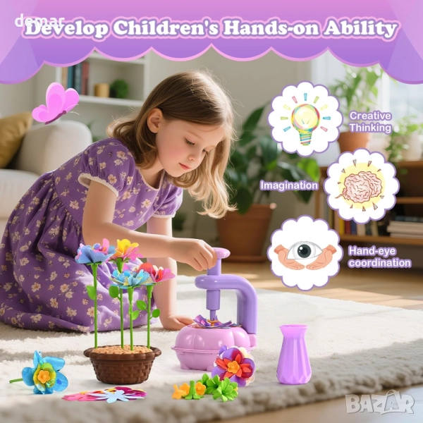 Този комплект за флорални творчески занимания включва голямо разнообразие от венчелистчета, стъбла, поставки и декоративни елементи, които позволяват на децата да проектират цветни, безпроблемни букети без лепило или боя. Всички части са тествани за безопасност и са оразмерени за малки ръчички, като подпомагат фината моторика и самостоятелната игра. Той насърчава креативността без екран, помагайки на децата да се фокусират, да се отпуснат и да развият внимание, особено полезно за хора с ADHD или аутизъм. Перфектен за деца на възраст 4–12 години, той предлага забавен начин за изследване на шарки, симетрия и ранни STEM концепции, като същевременно укрепва връзката родител-дете. Компактен и удобен за пътуване, той е идеален за игра у дома, в училище или в движение, което го прави подходящ подарък за рождени дни, празници и творчески дейности.