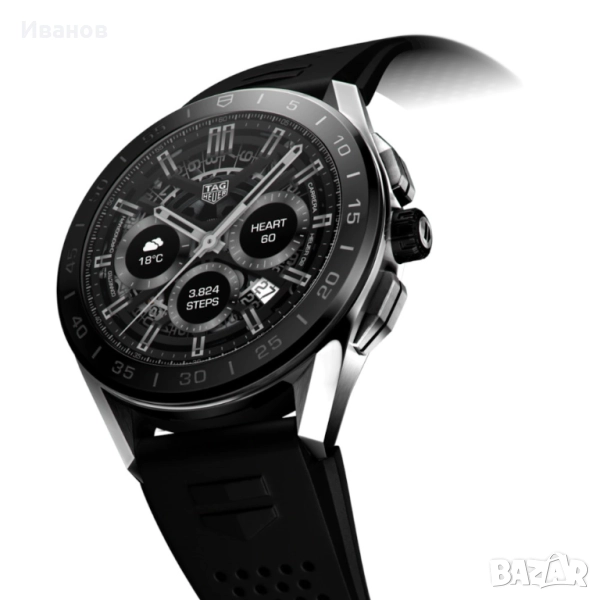 Този часовник TAG Heuer Connected Calibre разполага с PVD керамичен безел, който украсява корпуса от неръждаема стомана и устойчивия на надраскване сапфирен кристал. Чрез изчистени линии, интелигентни интегрирани функции, конфигурируеми циферблати и вграден сензорен екран, ние прекрачваме границите на дизайна и технологията, за да ви предложим часовник, който отговаря на вашите страсти.