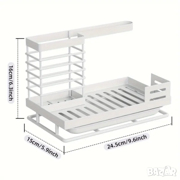 НОВ ОТВОРЕН САМО ЗА СНИМКИТЕ Бял Мултифункционален Органайзер за Мивка с Отводняваща Тава – Съхранение на Плот за Гъби, Четки за Съдове, Парцали и Почистващи Принадлежности, /Метален ,размерите са на снимката .Крайна цена