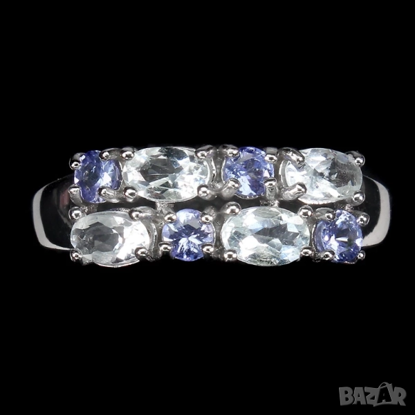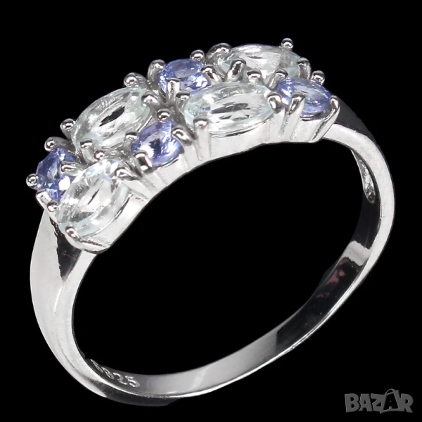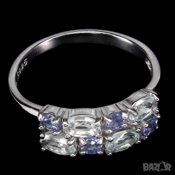 925 сребърен пръстен с аквамарин и танзанит