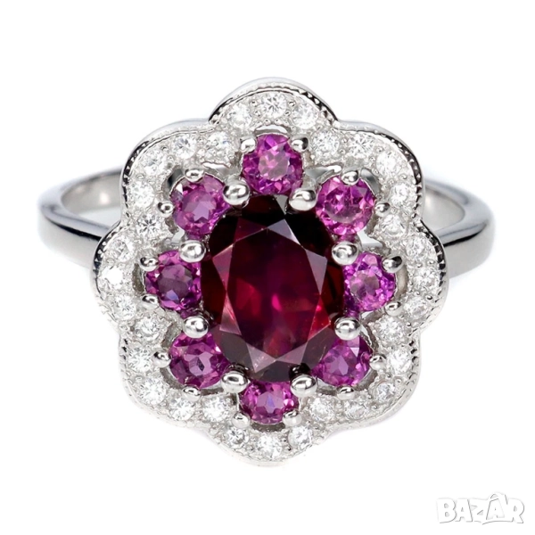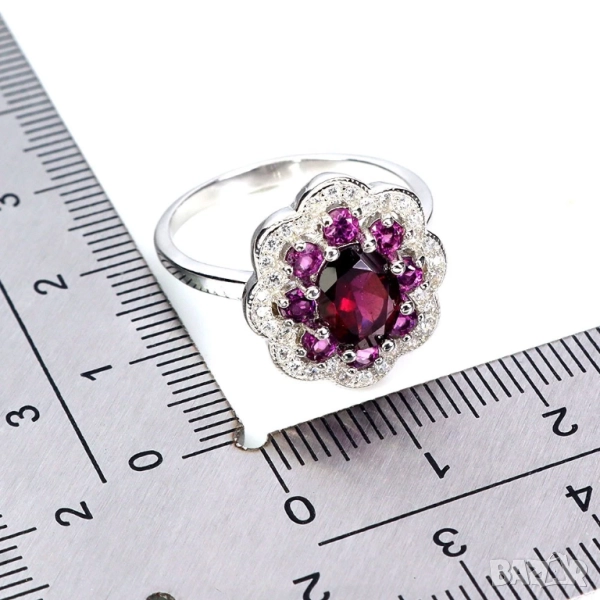925 сребърен пръстен с родолит гранат 8х6мм