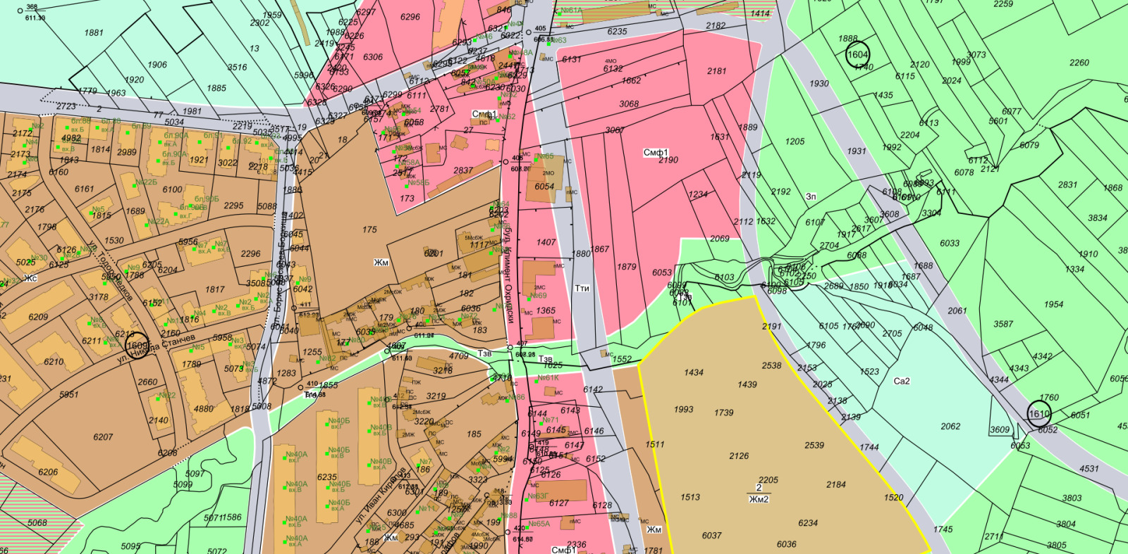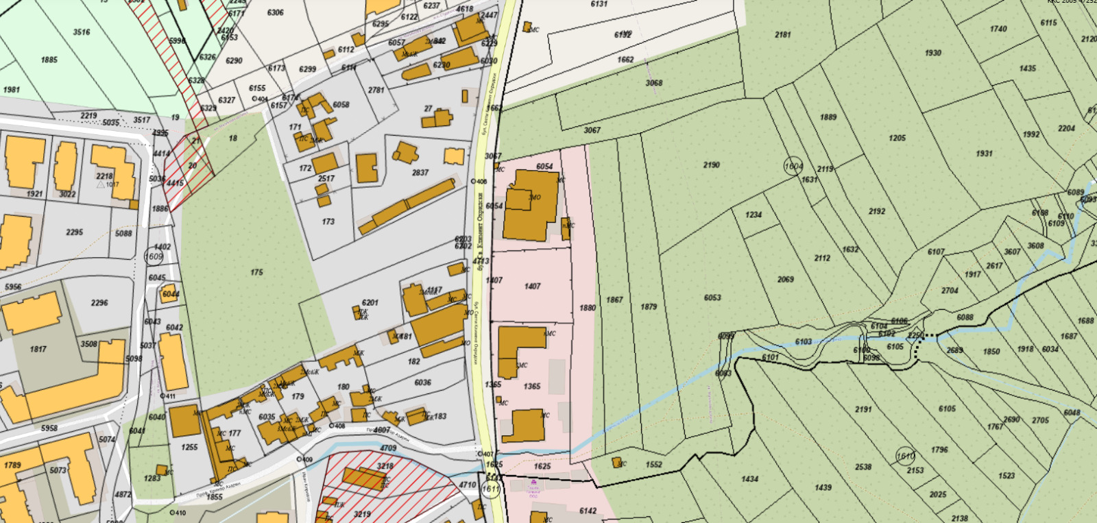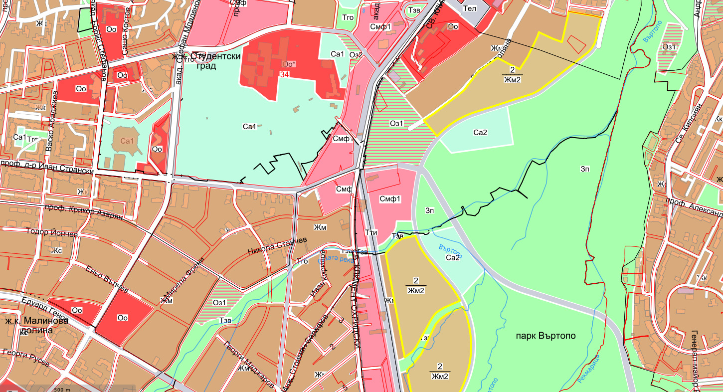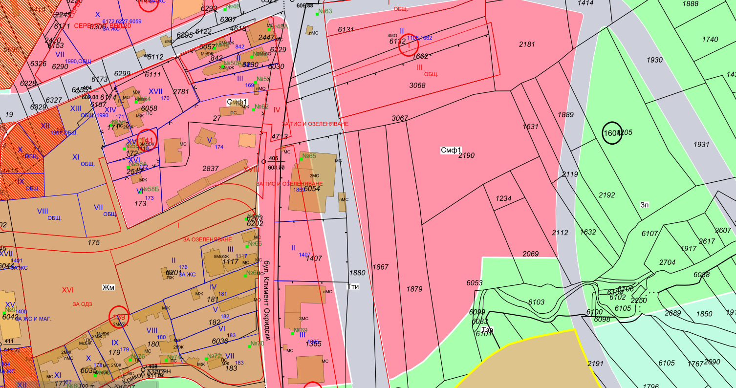 Поземлен имот на втора линия на бул. 'Климент Охридски' в местността: 'Алчаница - барутчийската' в близост до 'Ташев Галвинг'. По ОУП на гр. София, по-голямата част от имота попада в зона на застрояване Смф 1 с параметри на застрояване: Плътност 40 %, Кинт: 2, Мин. озеленена площ 40 %, КК - 26 метра. Подходящ е за жилищно строителство.