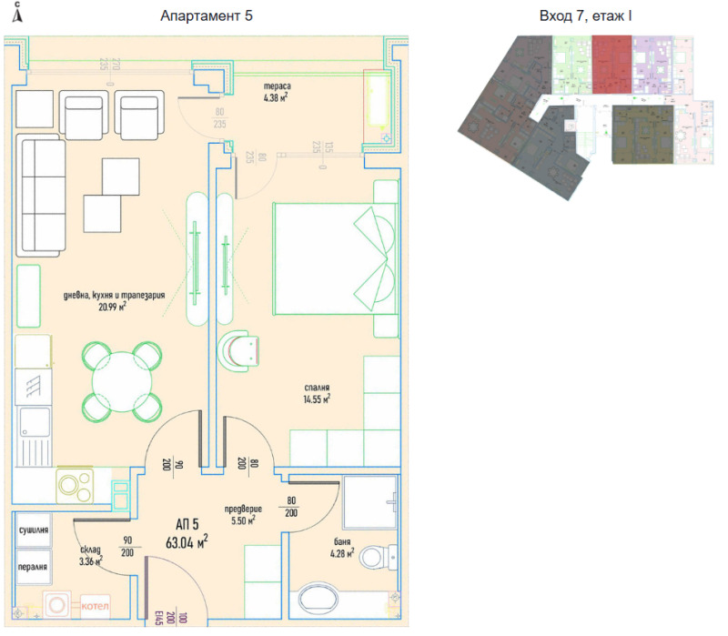 Застроена площ: 63.04 кв.м. жилище