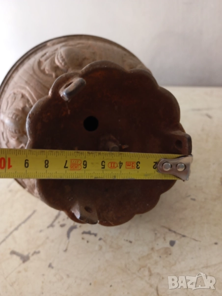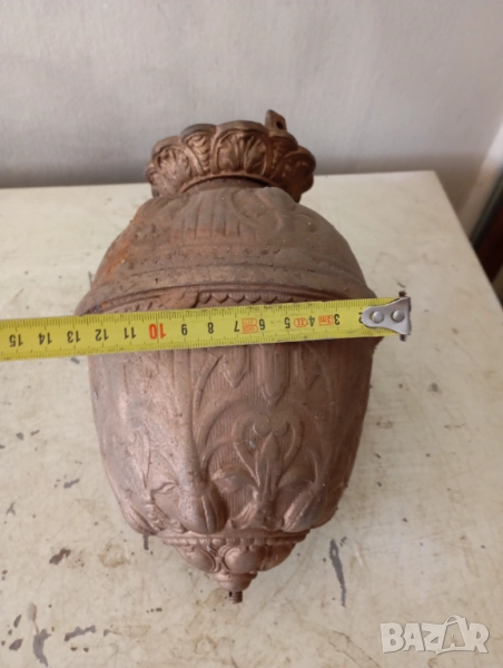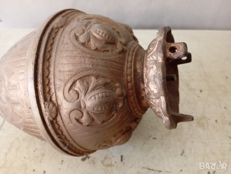 Метален,предполагам чугун.Боядисан с "бронзова" боя.