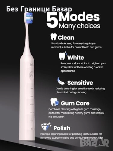 5 режима за почистване: Clean, White, Sensitive, Gum Care, Polish