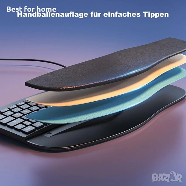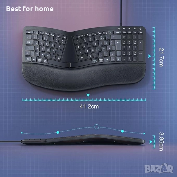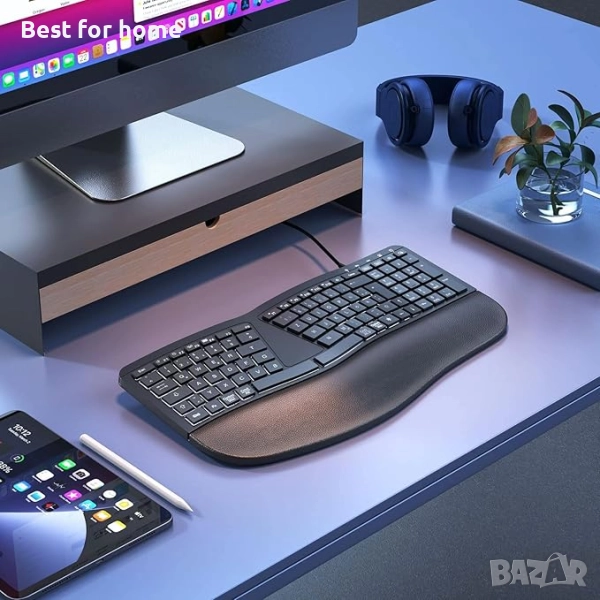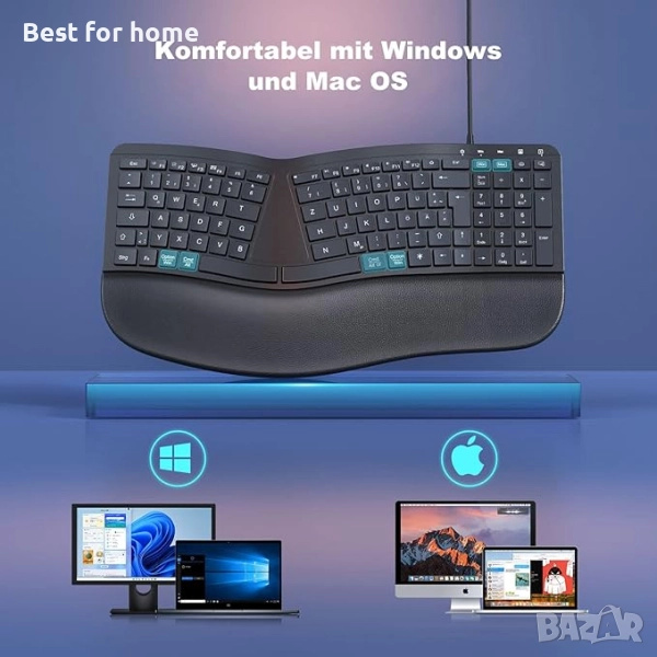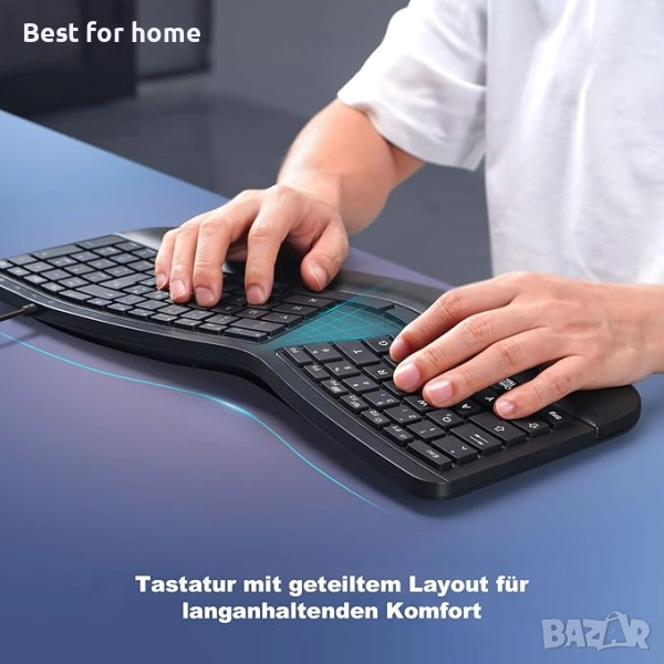 Ергономична клавиатура: Тази ергономична клавиатура е идеална за естествено писане. Проектирана с разделено оформление, както и извита форма, която позволява ръката ви да бъде поставена под правилния ъгъл, когато пишете. И се уверете, че ръцете ви остават естествени и удобни, когато използвате клавиатурата.