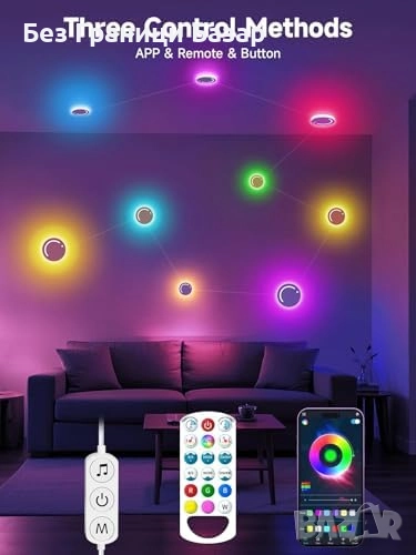 Милиони цветови комбинации, контрол чрез приложение или дистанционно