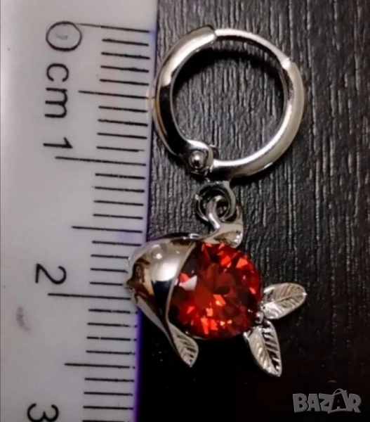 Детски обеци рибки от 9к бяло попълнено злато с алени цирконии 20 лв. → Обява 51770899