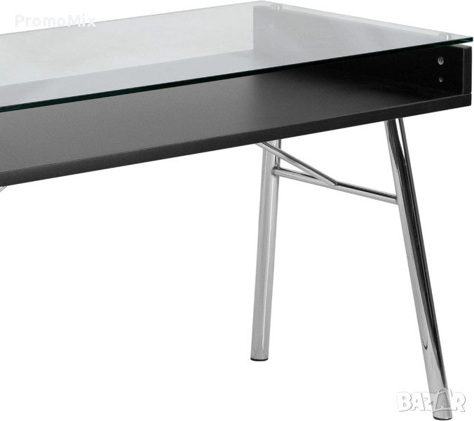 Бюро Flash Furniture Brettford NAN-JN-2966-GG Бюро с плот от закалено стъкло Работна маса Офис бюро