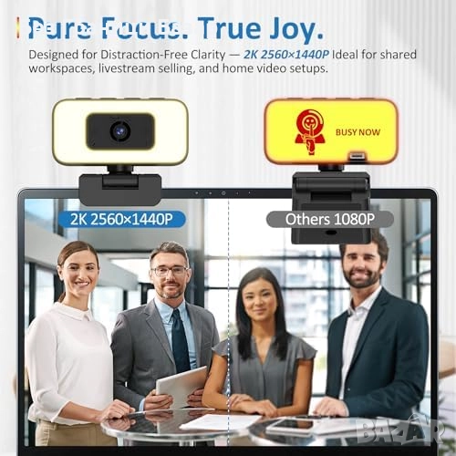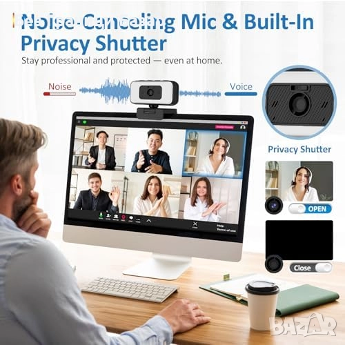 Нова USB уеб камера 2K 60fps с шумопотискане, зуум и LED осветление