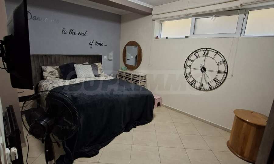 Имотът е с обща площ от 145 кв.м, разположен на 1-ви етаж със самостоятелен вход от улицата и с малка веранда/двор.