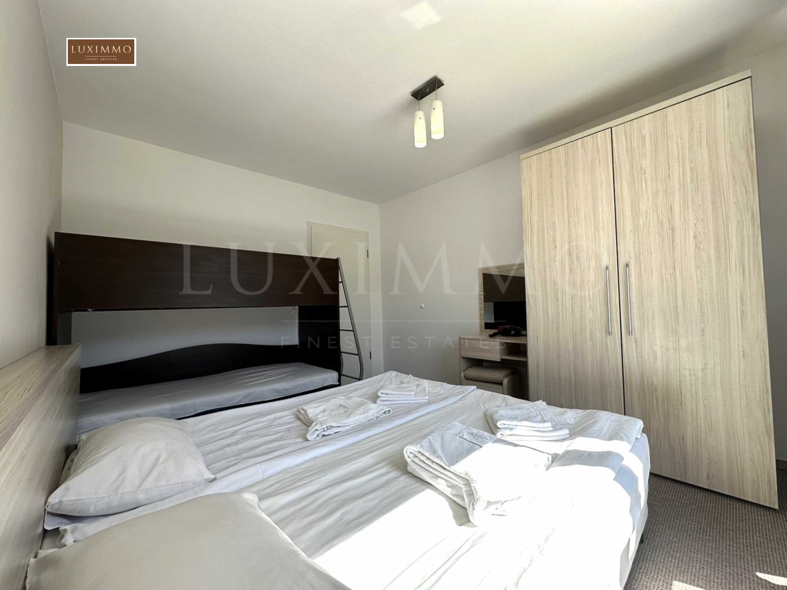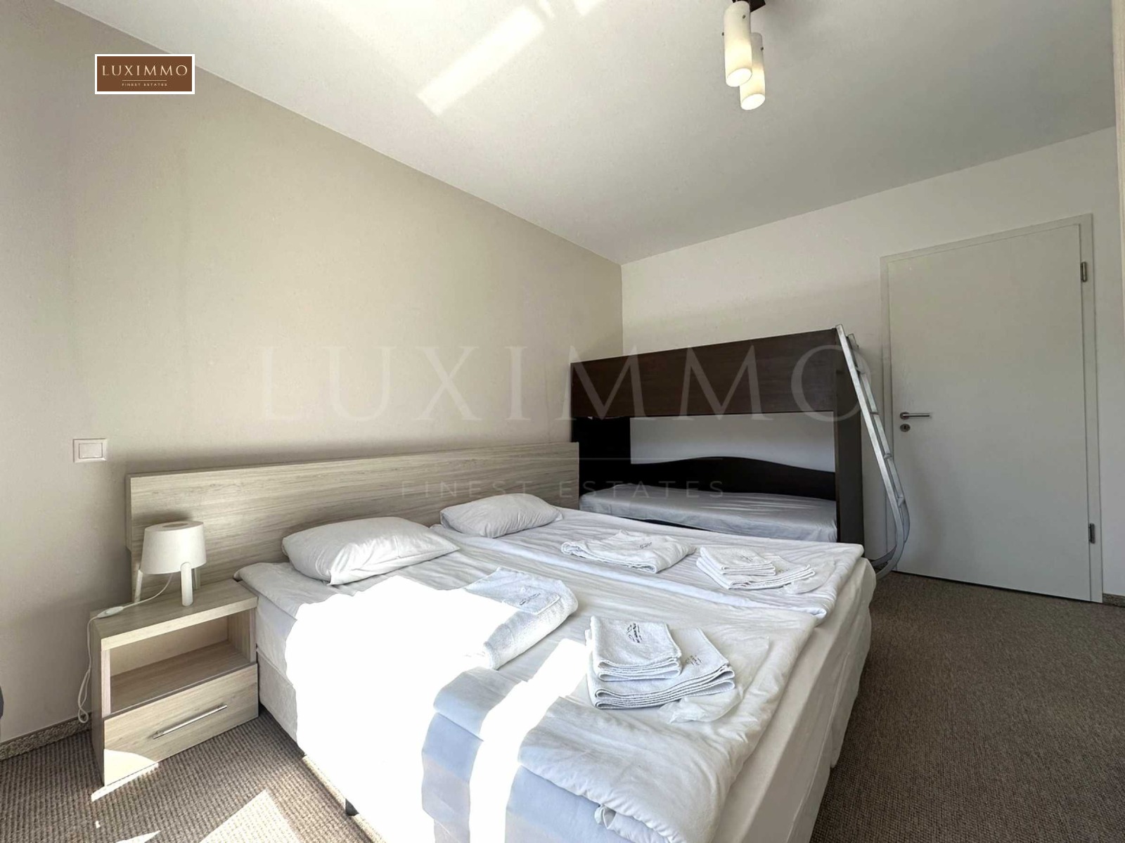 три спални с мокет, висококачествени матраци, гардероби и френски прозорци;