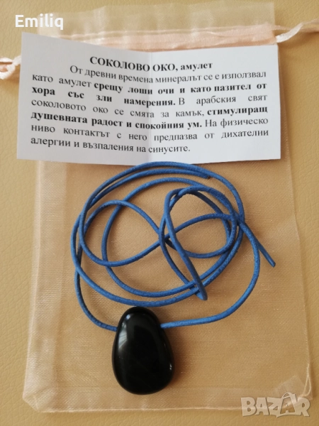 От древни времена минералът се е използвал като амулет срещу лоши очи и като пазител от хора със зли намерения. В арабския свят соколовото око се смята за камък, стимулиращ душевната радост и спокойния ум. На физическо ниво контактът с него предпазва от дихателни алергии и възпаления на синусите.