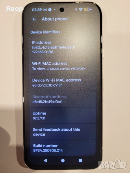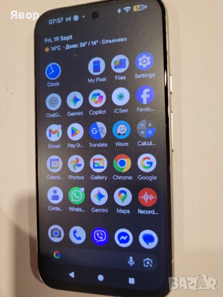 Pixel 8a, чисто нов, неизползван закупен на 15.06.2025 – с 2 год. гаранция от ЕМАГ. Всичко работи с всички оператори. Оперц.с-ма - Анроид .