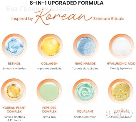 8-в-1 формула с ретинол, колаген, ниацинамид и пептиди