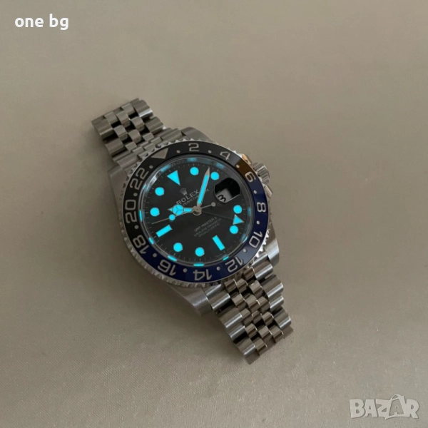 ФУНКЦИИ: Час, дата, GMT (второ време), централен секундарник, много силно луминесцентни стрелки и часови маркери от фосфор които светят нощно време в тъмното