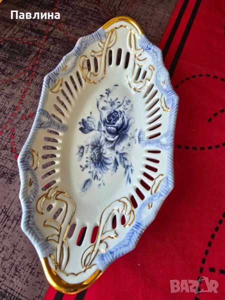 Порцеланова фруктиера ажурен порцелан. Дължина 15 см. и широчина 13 см. Без маркировка! Без забележки!