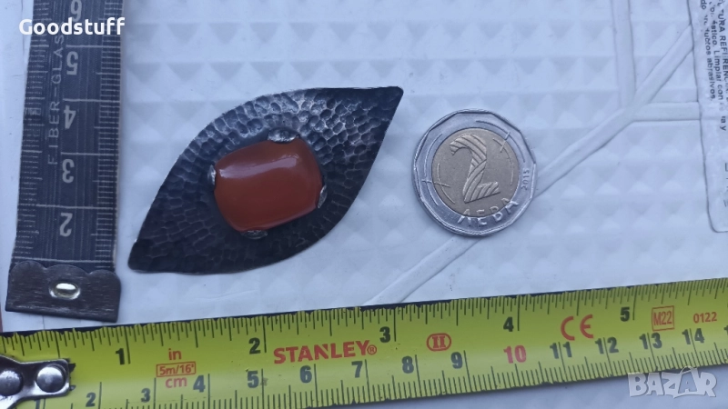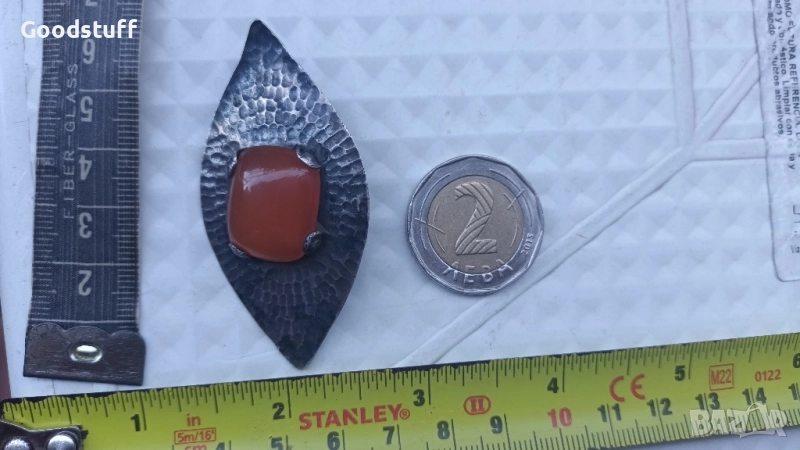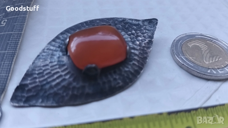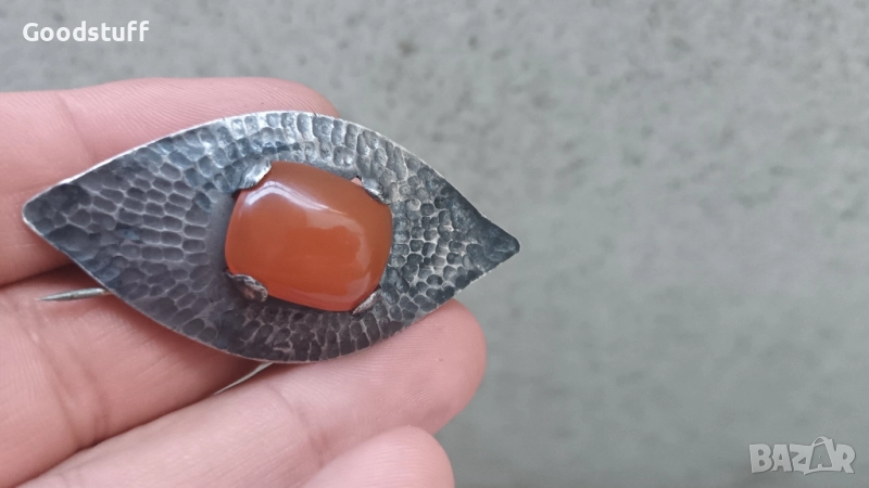 Сребърна,карнеол,брошка,кабошон,арт нуво, ръчна изработка → Обява 51773049