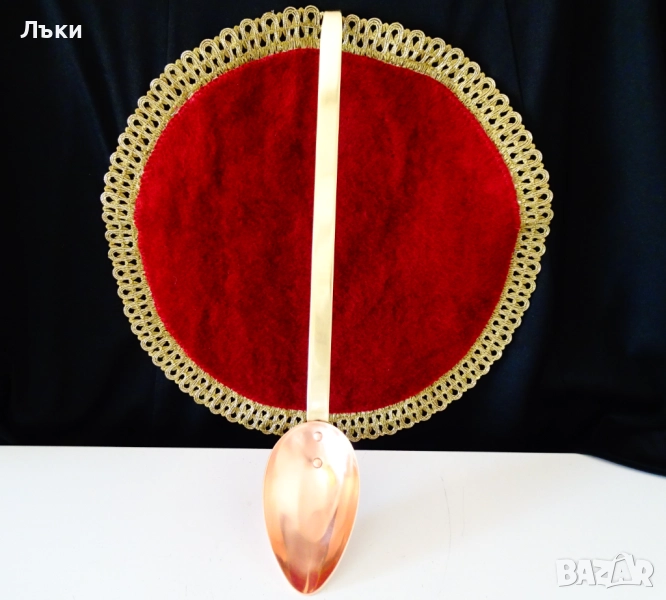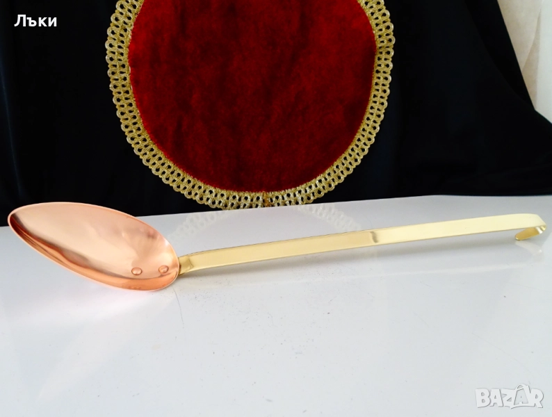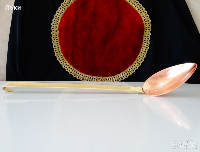 Лъжицата е част от пълен комплект медни прибори за готвене и