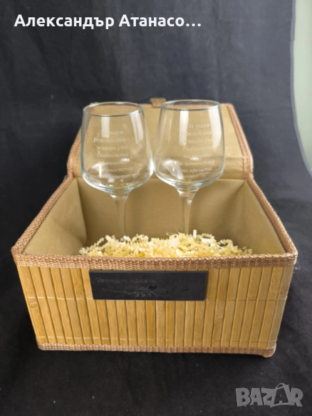 Две чаши за вино + Подаръчна бамбукова кутия.