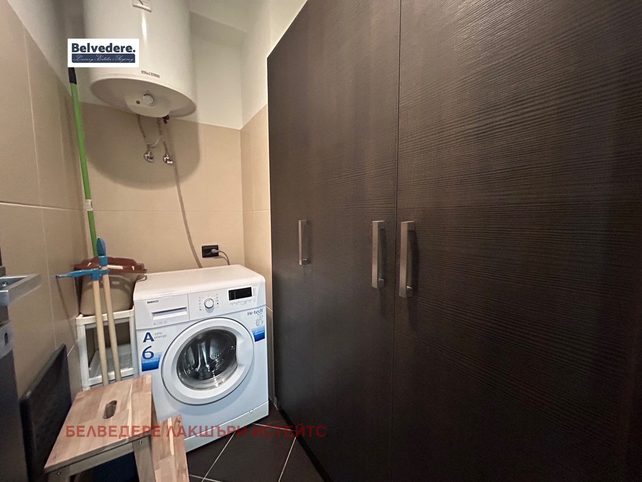 Layout: entrance hall, spacious living room with kitchenette, master bedroom, second bedroom, bathroom with toilet,guest toilet, utility room, two balconies.