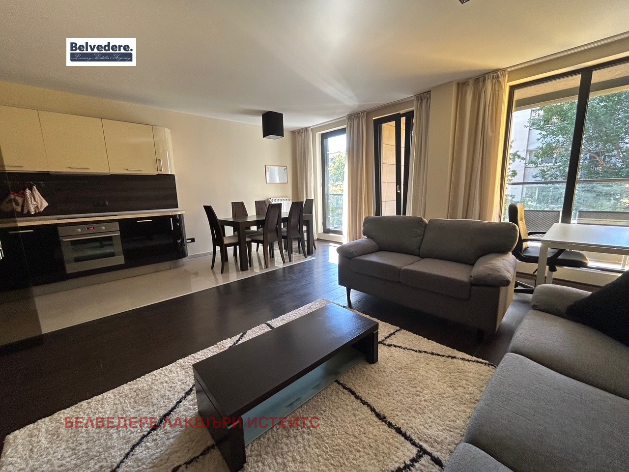 Впечатляващ трисатаен апартамент в нова жилищна сграда с отлични общи части, охрана, контролиран достъп и видеонаблюдение.