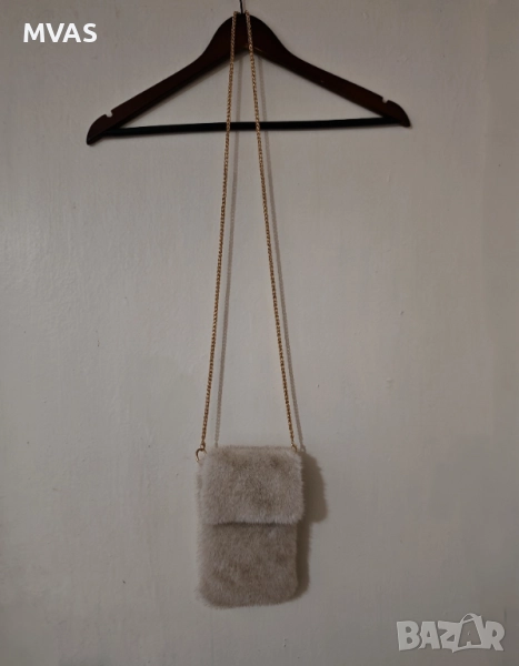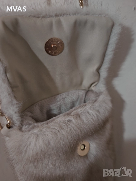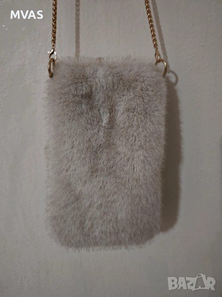 Пухкава чанта, чанта зайче, есенна бежова чанта, чанта с косъм, модерна чанта