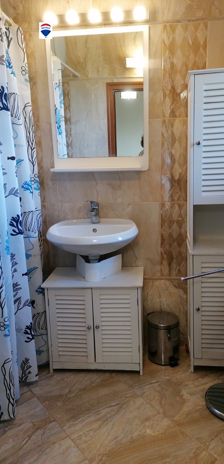 Кухненският бокс е с шкафове на два реда, вградени електроуреди, всичко необходимо за едно домакинство, включително, съдомиялна и сушилня за дрехи.