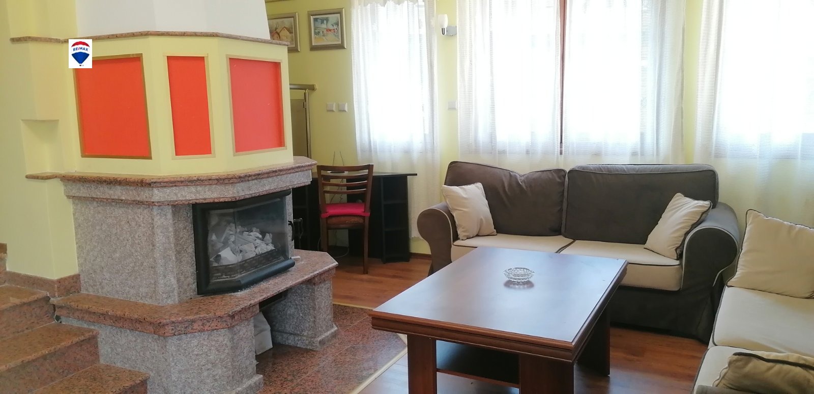 За допълнинелен уют в дневната част има камина, витражи и картини, а също и 5 климатика за отопление и охлаждане. Имотът е на топ място в сърцето на Пловдив и на пешеходно разстояние до Главната, Капана, театри, заведения и магазини, на 5 мин. от детска градина и училище.