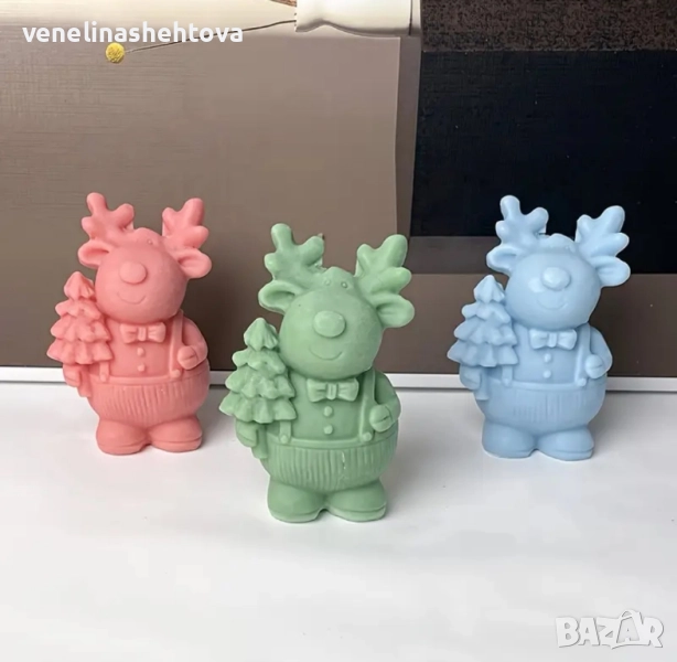 3D елен държи елха Силиконов молд форма за свещи гипс сапун смола фондан → Обява 51774843