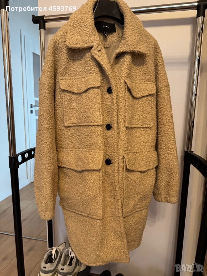 Преходно яке Vero Moda, размер Л, бежов цвят, странични джобове, обличано веднъж. Дължина 87 см