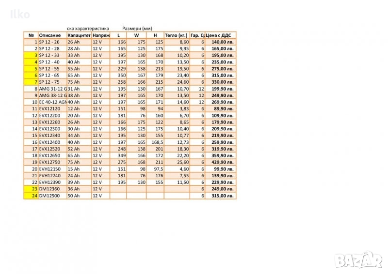 Доставка на акумулатори с различен Ah, спрямо вашите нужди, и съответно различна цена.
