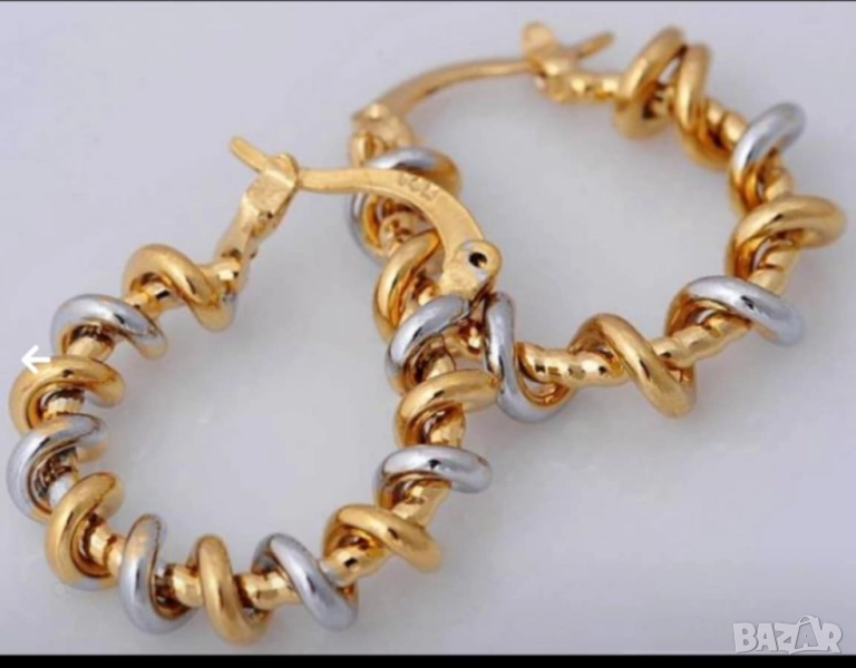 Интересни навити обеци от 9к бяло и жълто попълнено злато 15 лв.
