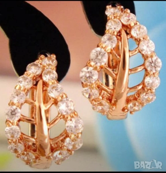 Обеците са нови и невероятно красиви, блестящи с нежните цирконии по тях. Не се различават от масивното злато, защото при изработката им е използвана специална бижутерска лазерна техника, при която под високо налягане и температура се наслоява 9к златна сплав с мед, поради която много леко розовеят.