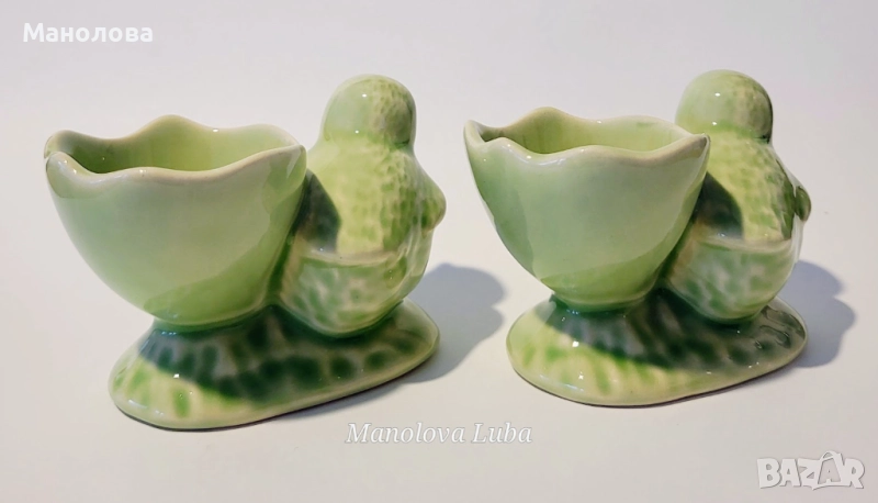Две винтидж порцеланови чашки/коктиери/ за яйца във формата на пиленца производство на немската компания Krömer Porzellan от 70-те години на миналия век.