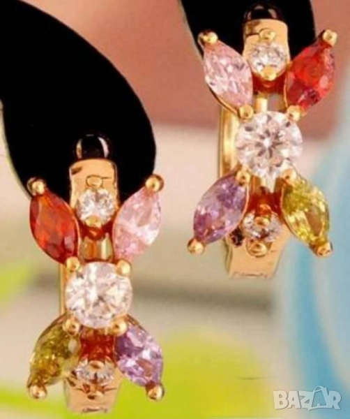 Изящни обеци с разноцветни кристали от 9к попълнено злато 15 лв., снимка 1 - Обеци - 51775481 Изящни обеци с разноцветни кристали от 9к попълнено злато 15 лв., снимка 2 - Обеци - 51775481 1/2