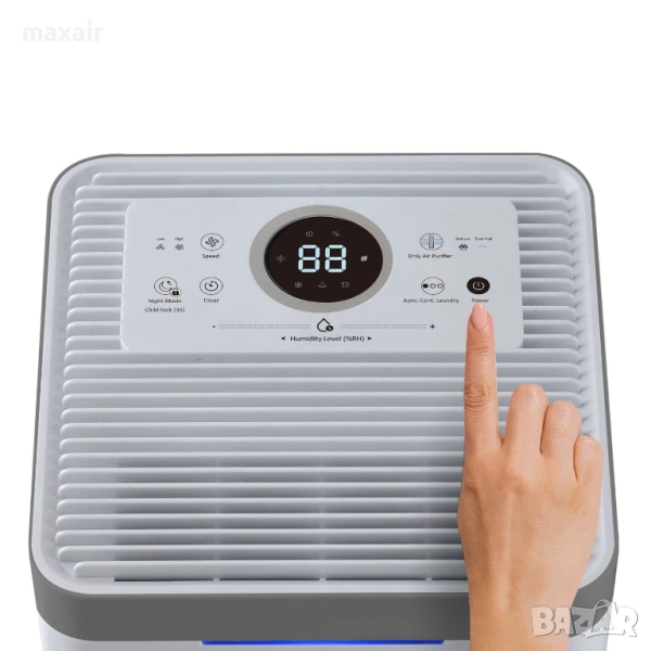 Уредът работи и като пречиствател на въздух – премахва прах, алергени и неприятни миризми, осигурявайки свежа и здравословна среда.