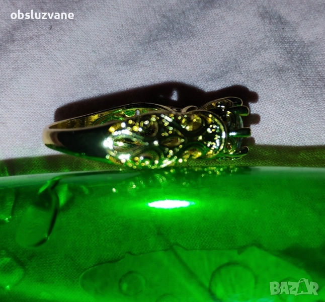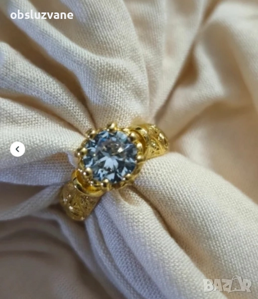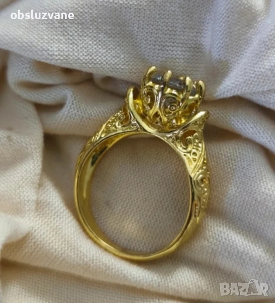 Моден пръстен в класически винтидж стил модел в покритие от злато и с бял красиво шлифован циркон
