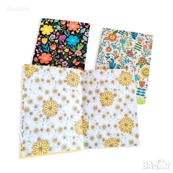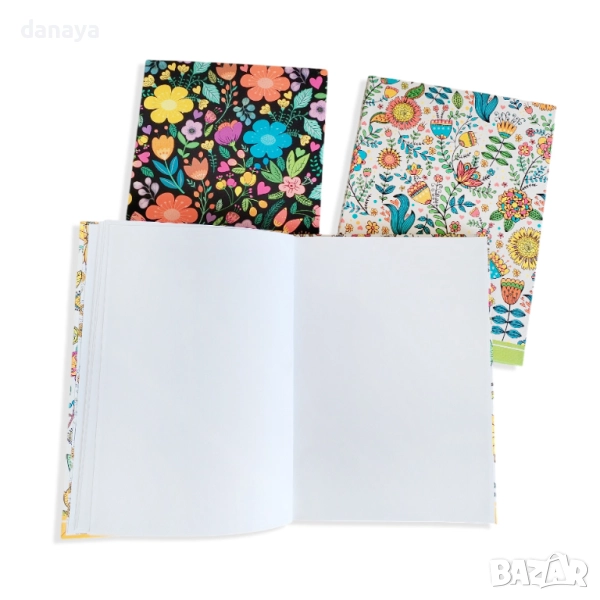 – Твърди цветни корици с флорални мотиви
