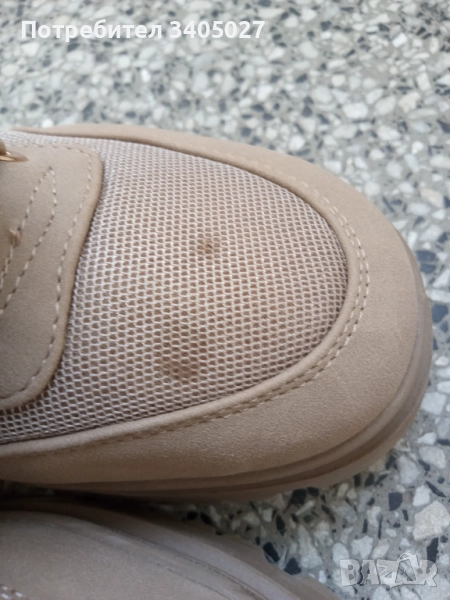 Продавам бежови боти, използвани, размер 36*. Едната обувка има петно отпред, което не се маха. Запазени са.